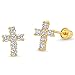 14k Gold Plated Brass Cross Cubic Zirconia Screwback Baby Girls Earrings with Sterling Silver Post