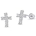 925 Sterling Silver Rhodium Plated Cross Cubic Zirconia Screwback Baby Girls Earrings