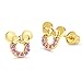 14k Gold Plated Brass Pink Mouse Cubic Zirconia Screwback Earrings with Sterling Silver Post