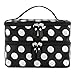 BONAMART Small Travel Makeup Bag Cosmetic Organizer Case for Women, Professional Double Layer Black Pink Dot Toiletry Train Brush Bags With Mirror for Girls Ladies (7.87x4.72x5.51 Inches)