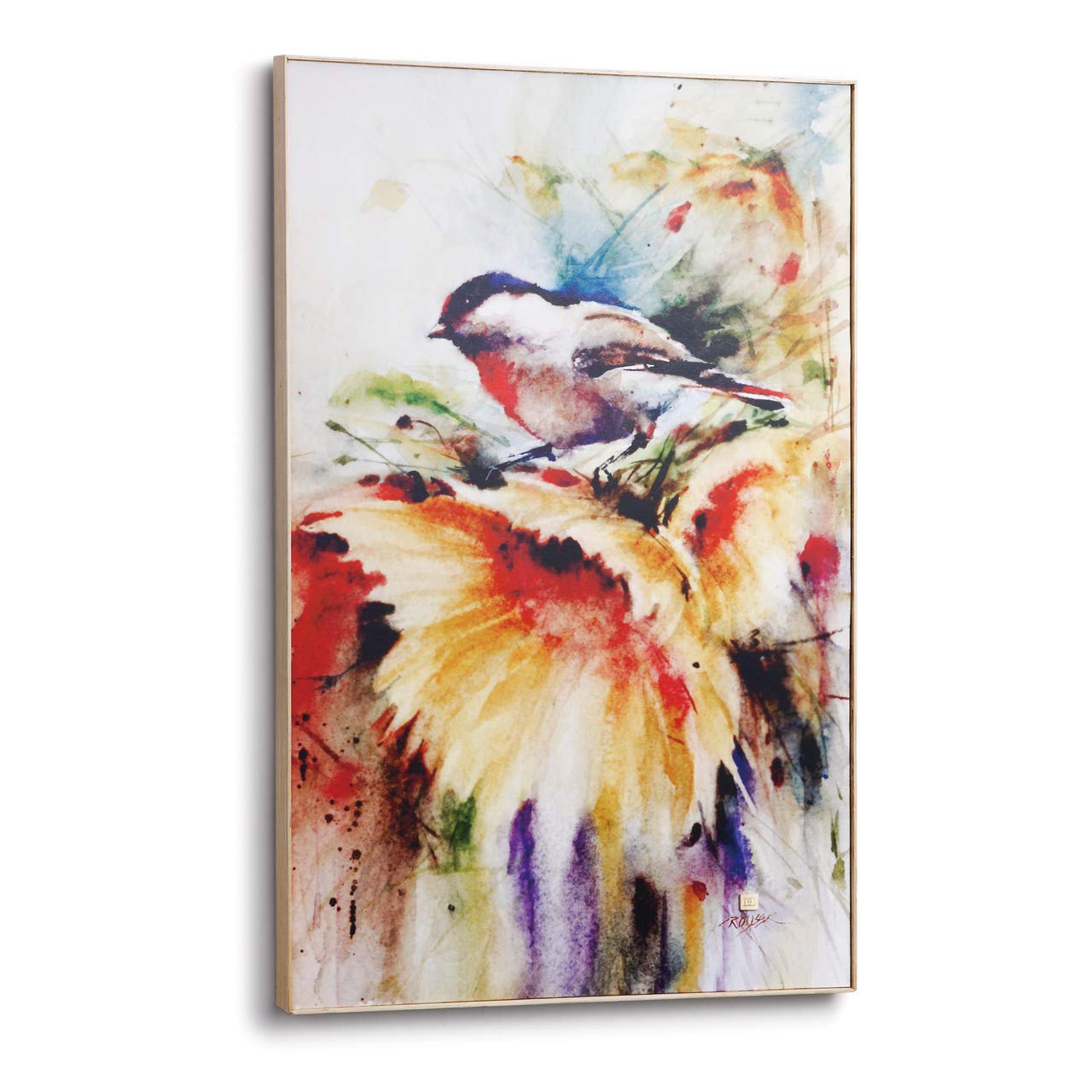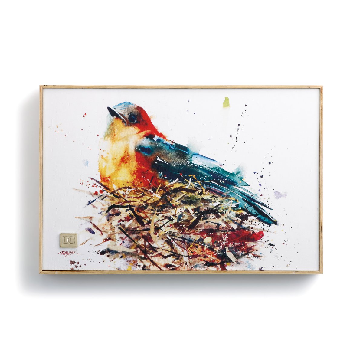 DEMDACO Dean Crouser Bird in Nest Gallery Wrapped Canvas Print 8 x 12 Ash Wood Framed Wall Art Plaque