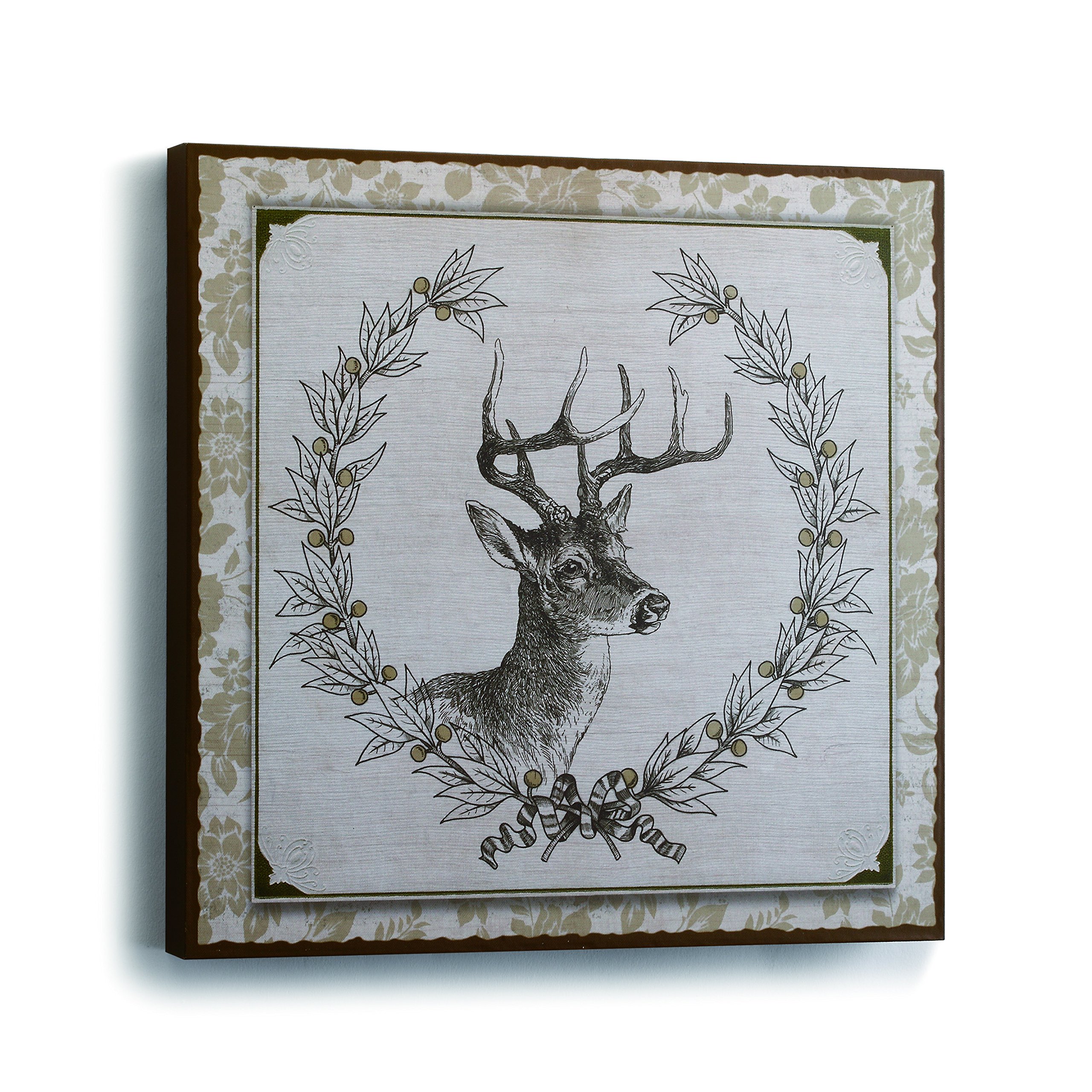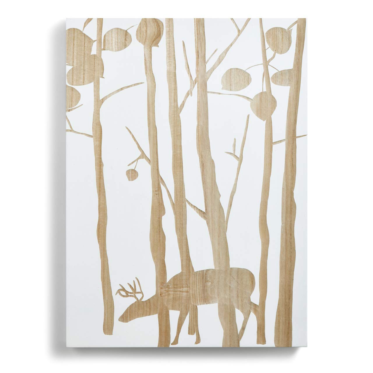 DEMDACO Aspen Deer in Trees Woodgrain and White Silhouette Large Wood Wall Art Sign Plaque