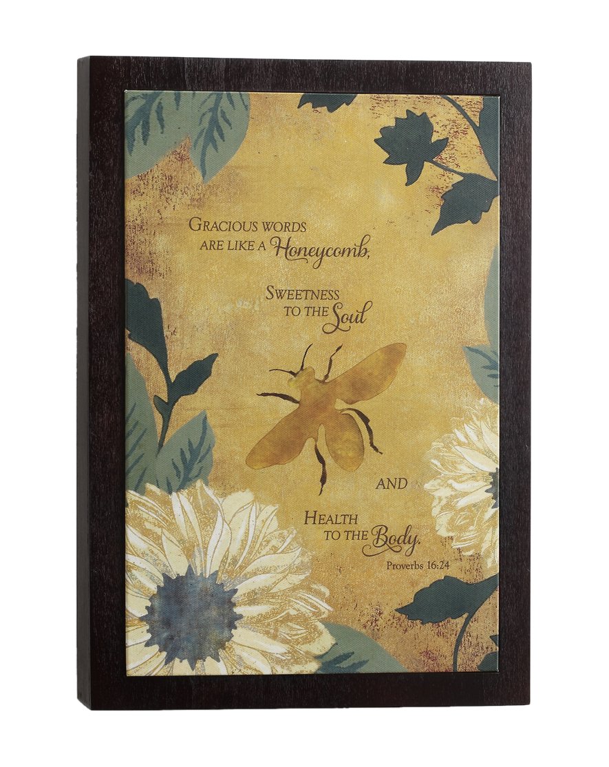 DEMDACO Dean Crouser Bumblebee Watercolor Floral 12 x 8 Wood and Canvas Decorative Wall Art Plaque