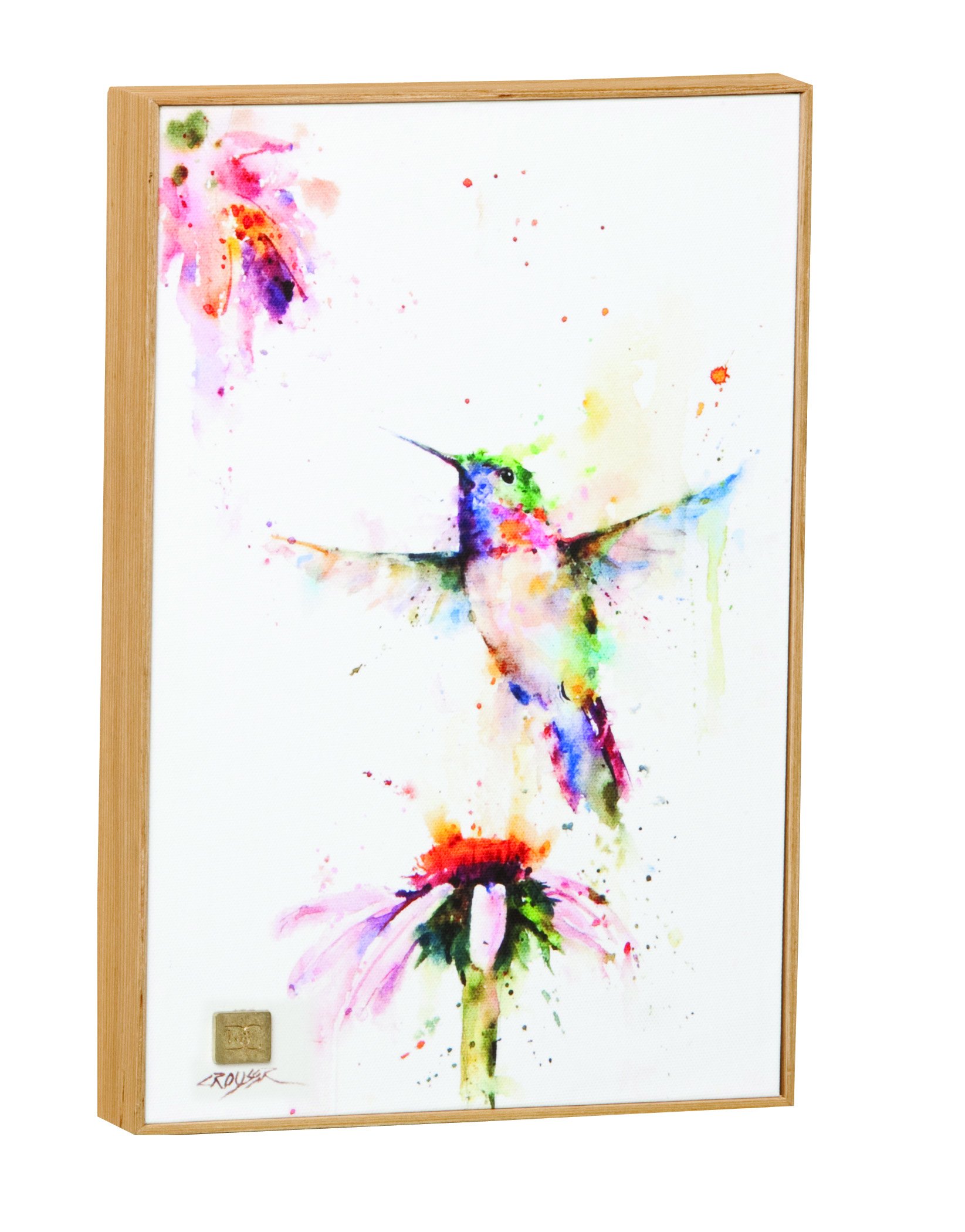 Demdaco Dean Crouser PeeWee Hummingbird Gallery Wrapped Canvas Print 12 x 8 Ash Wood Framed Wall Art Plaque