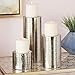 CosmoLiving by Cosmopolitan 34569 Handmade Large, Cylindrical, Metallic Silver Hammered Metal Candle Holders, Set of 3: 5” x 11”, 5” x 7”, 5” x 4”