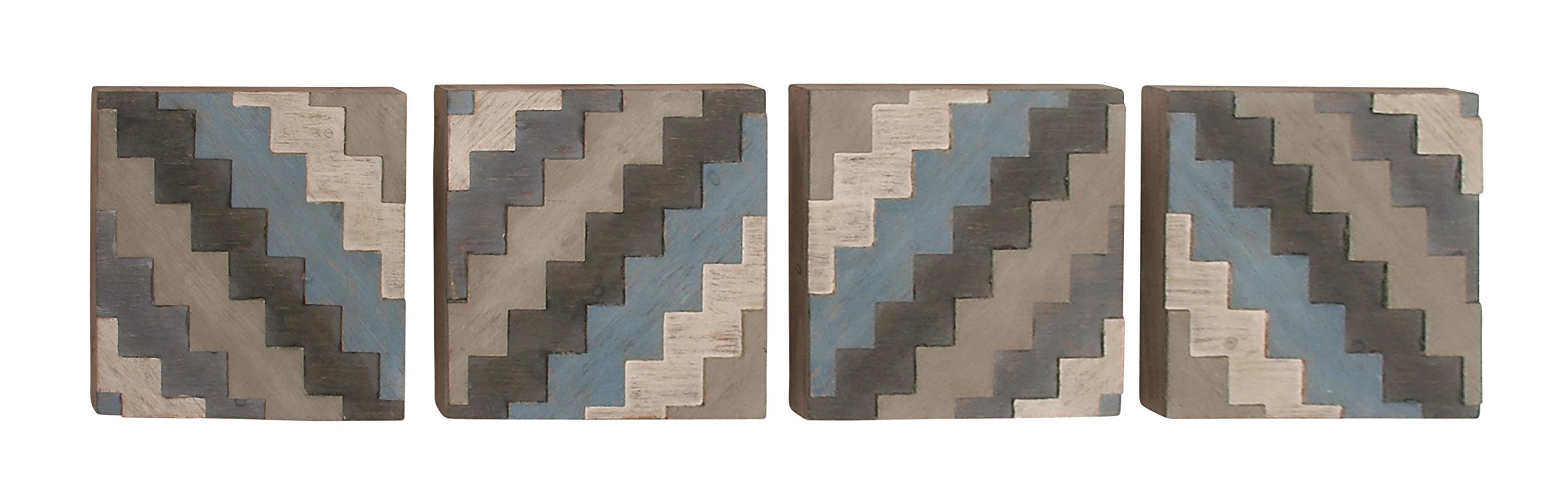Deco 79 47954 Wooden Wall Decor (Set of 4), 15" x 15", Black/Gray/White/Blue