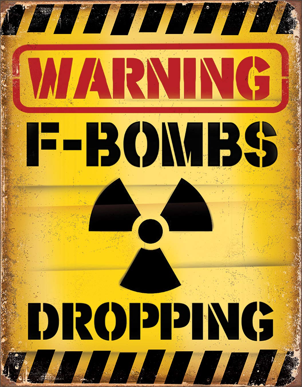 Desperate Enterprises Warning F-Bombs Dropping Tin Sign, 12.5" W x 16" H
