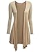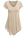 Doublju V-Neck Handkerchief Hem Long Tunic Shirt Top for Women with Plus Size Beige 2XL
