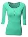 Doublju Long Sleeve Thermal Henley T-Shirt for Women with Plus Size Green X-Large