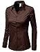 Doublju Slim Fit Cotton Blend Button Down Collared Shirt for Women with Plus Size Brown 1X