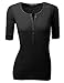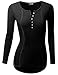 Doublju Mens Henley T-shirts with Button Placket BLACK (US-L)