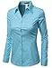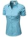 Doublju Slim Fit Cotton Blend Button Down Collared Shirt for Women with Plus Size SkyBlue X-Large