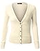 Doublju Womens Long Sleeve Clasic Button IVORY Solid Sweater Cardigan,S