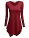 Doublju V-Neck Handkerchief Hem Long Tunic Shirt Top for Women with Plus Size DarkRed 3XL