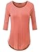 Doublju Womens Basic 3/4 Sleeve Slit V-Neckline Rayon Top MAGENTA X LARGE