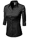 Doublju Solid 3/4 Sleeve Cotton Button Down Collared Shirt (Plus size available), X-Large, Black