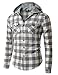 Doublju Mens Long Sleeve Flannel Button Down Shirt with Detachable Hood GRAYIVORY 3XL