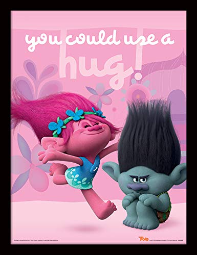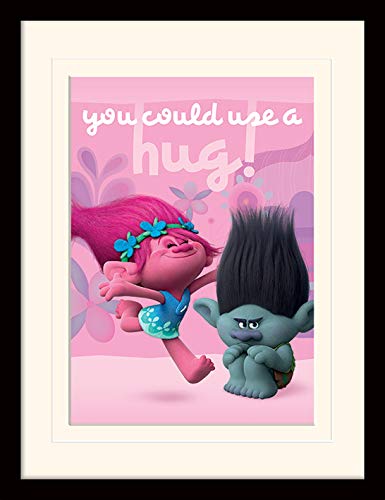DreamWorks Trolls Hug Mounted & Framed 30 x 40cm Print, 42 x 32 x 2.4 cm, Multi-Colour