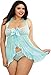 Dreamgirl Women's Playful Retro Stretch Mesh Babydoll and Panty Set, Aqua, Small