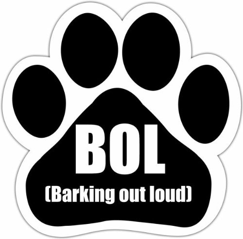 "BOL- Barking Out Loud" Car Magnet With Unique Paw Shaped Design Measures 5.2 by 5.2 Inches Covered In UV Gloss For Weather Protection
