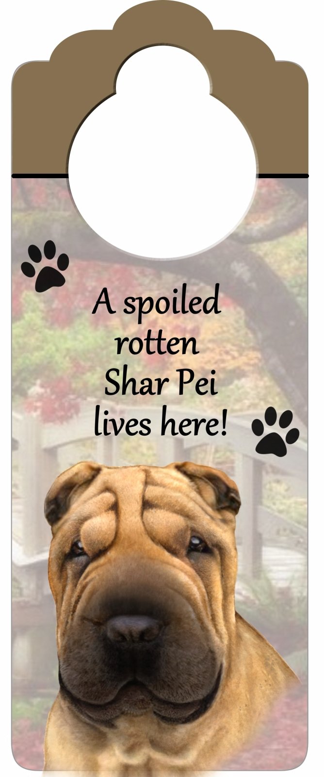 Sharpei Wood Sign "A Spoiled Rotten Sharpei Lives Here"with Artistic Photograph Measuring 10 by 4 Inches Can Be Hung On Doorknobs Or Anywhere In Home