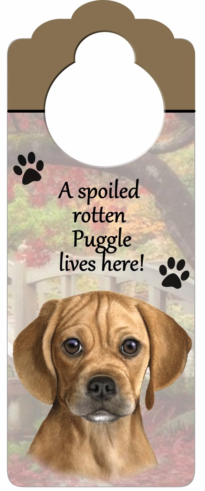 Puggle Wood Sign "A Spoiled Rotten Puggle Lives Here"with Artistic Photograph Measuring 10 by 4 Inches Can Be Hung On Doorknobs Or Anywhere In Home