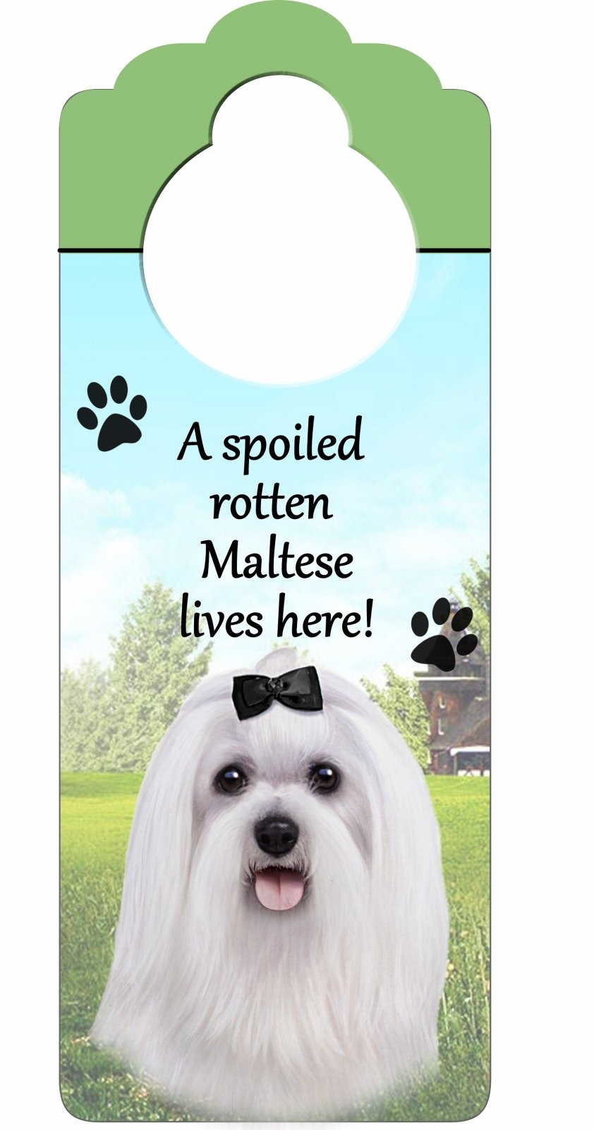 Maltese Wood Sign "A Spoiled Rotten Maltese Lives Here"with Artistic Photograph Measuring 10 by 4 Inches Can Be Hung On Doorknobs Or Anywhere In Home