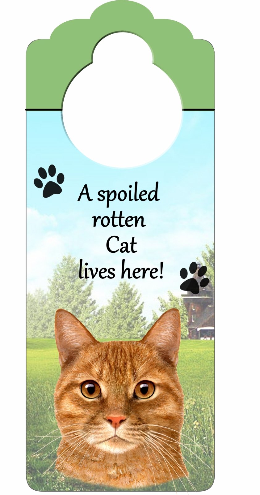 Persian Cat Wood Sign "A Spoiled Rotten Persian Cat Lives Here"with Artistic Photograph Measuring 10 by 4 Inches Can Be Hung On Doorknobs Or Anywhere In Home