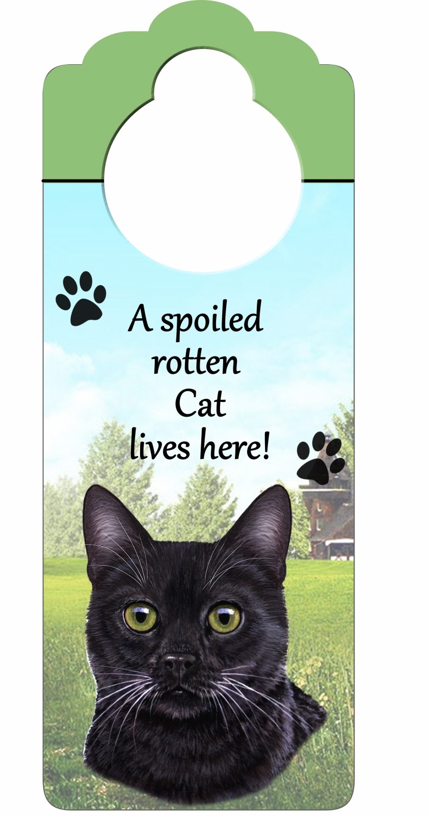 Black Cat Wood Sign "A Spoiled Rotten Black Cat Lives Here"with Artistic Photograph Measuring 10 by 4 Inches Can Be Hung On Doorknobs Or Anywhere In Home