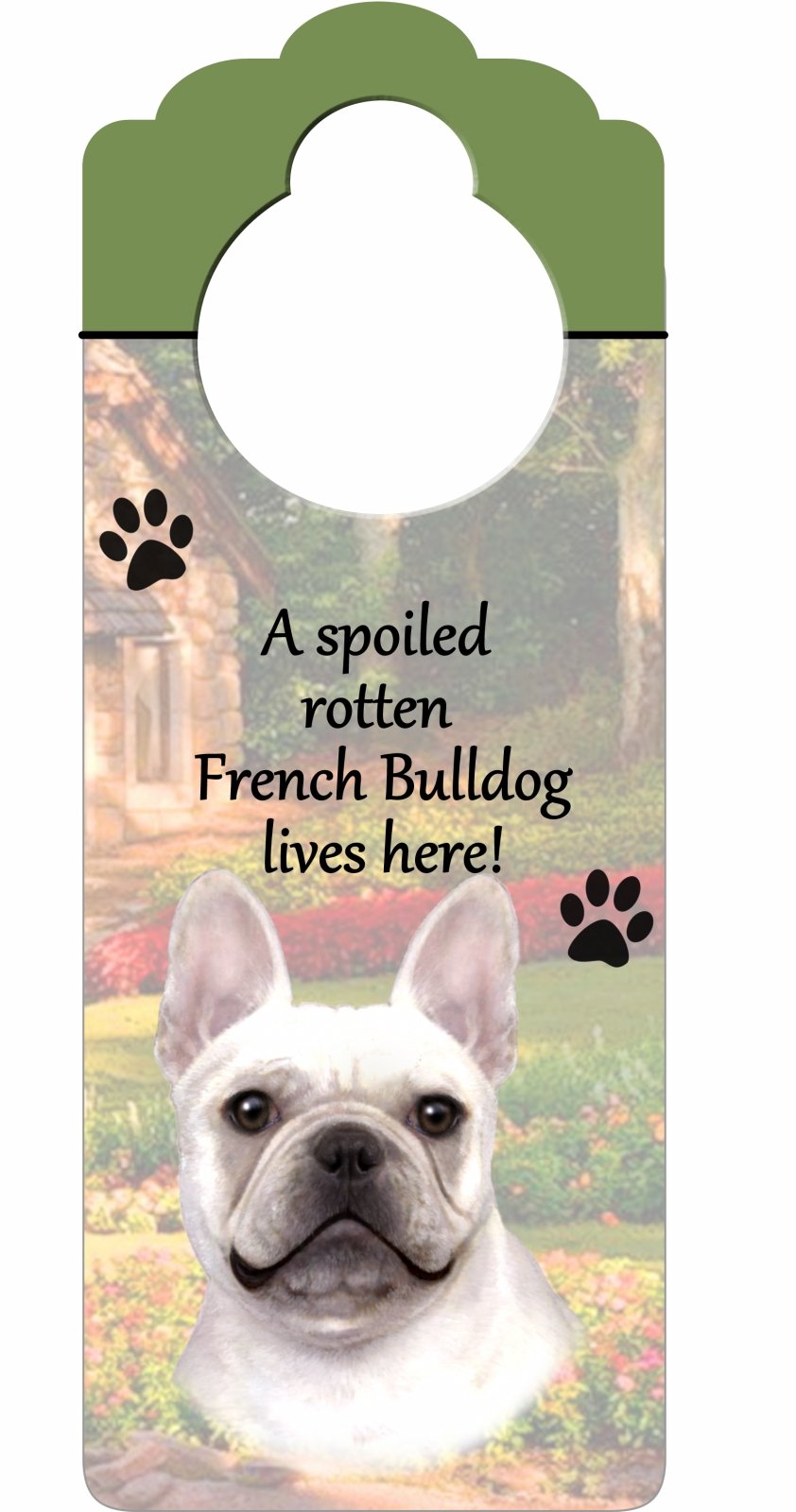 French Bulldog Wood Sign "A Spoiled Rotten French Bulldog Lives Here"with Artistic Photograph Measuring 10 by 4 Inches Can Be Hung On Doorknobs Or Anywhere In Home