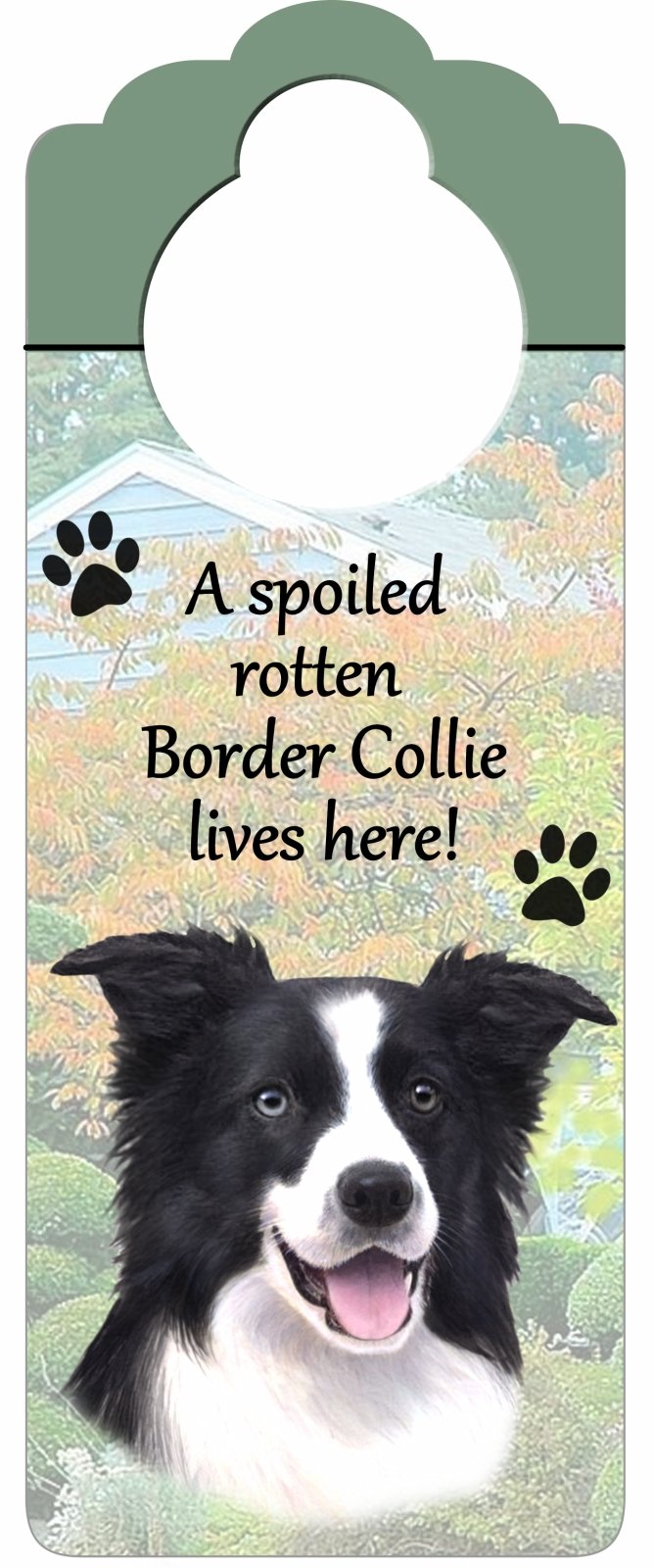 Border Collie Wood Sign "A Spoiled Rotten Border Collie Lives Here"with Artistic Photograph Measuring 10 by 4 Inches Can Be Hung On Doorknobs Or Anywhere In Home