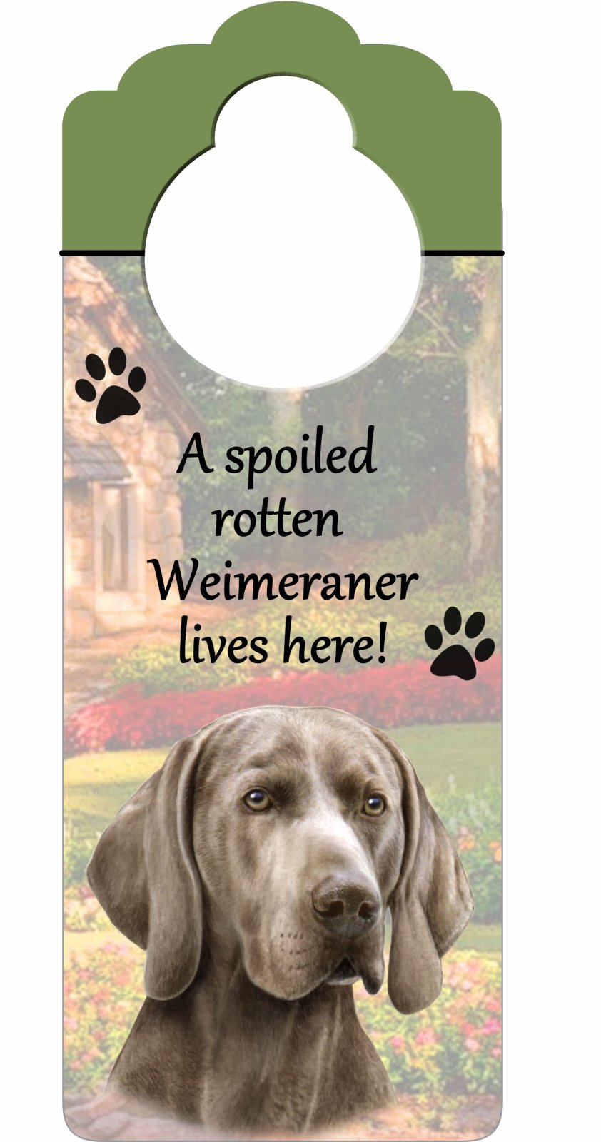 Weimeraner Wood Sign "A Spoiled Rotten Weimeraner Lives Here"with Artistic Photograph Measuring 10 by 4 Inches Can Be Hung On Doorknobs Or Anywhere In Home