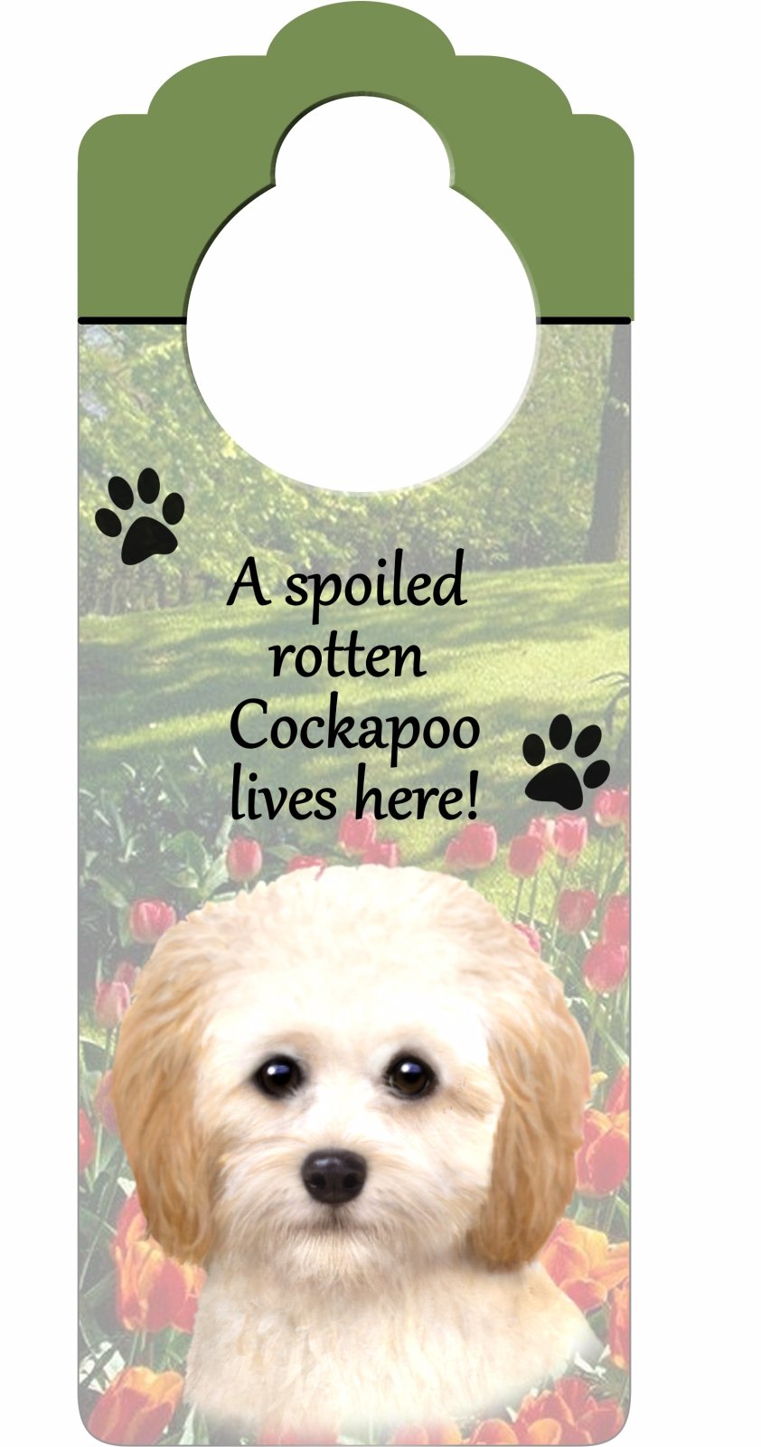 Cockapoo Wood Sign "A Spoiled Rotten Cockapoo Lives Here"with Artistic Photograph Measuring 10 by 4 Inches Can Be Hung On Doorknobs Or Anywhere In Home