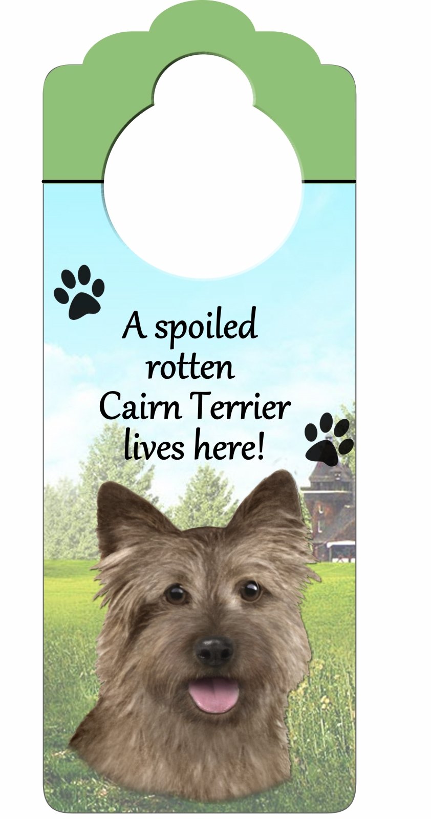 Cairn Terrier Wood Sign "A Spoiled Rotten Cairn Terrier Lives Here"with Artistic Photograph Measuring 10 by 4 Inches Can Be Hung On Doorknobs Or Anywhere In Home