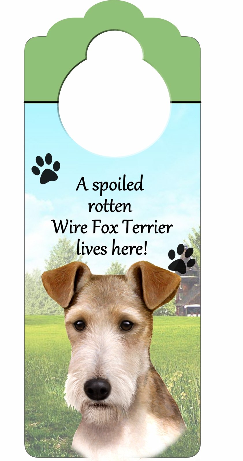 Wire Fox Terrier Wood Sign "A Spoiled Rotten Wire Fox Terrier Lives Here"with Artistic Photograph Measuring 10 by 4 Inches Can Be Hung On Doorknobs Or Anywhere In Home
