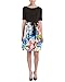 ELLEN TRACY Women's Cap Sleeve Solid Top with Key Hole and Printed Fit and Flare Skirt, Black/White/Yellow, 8