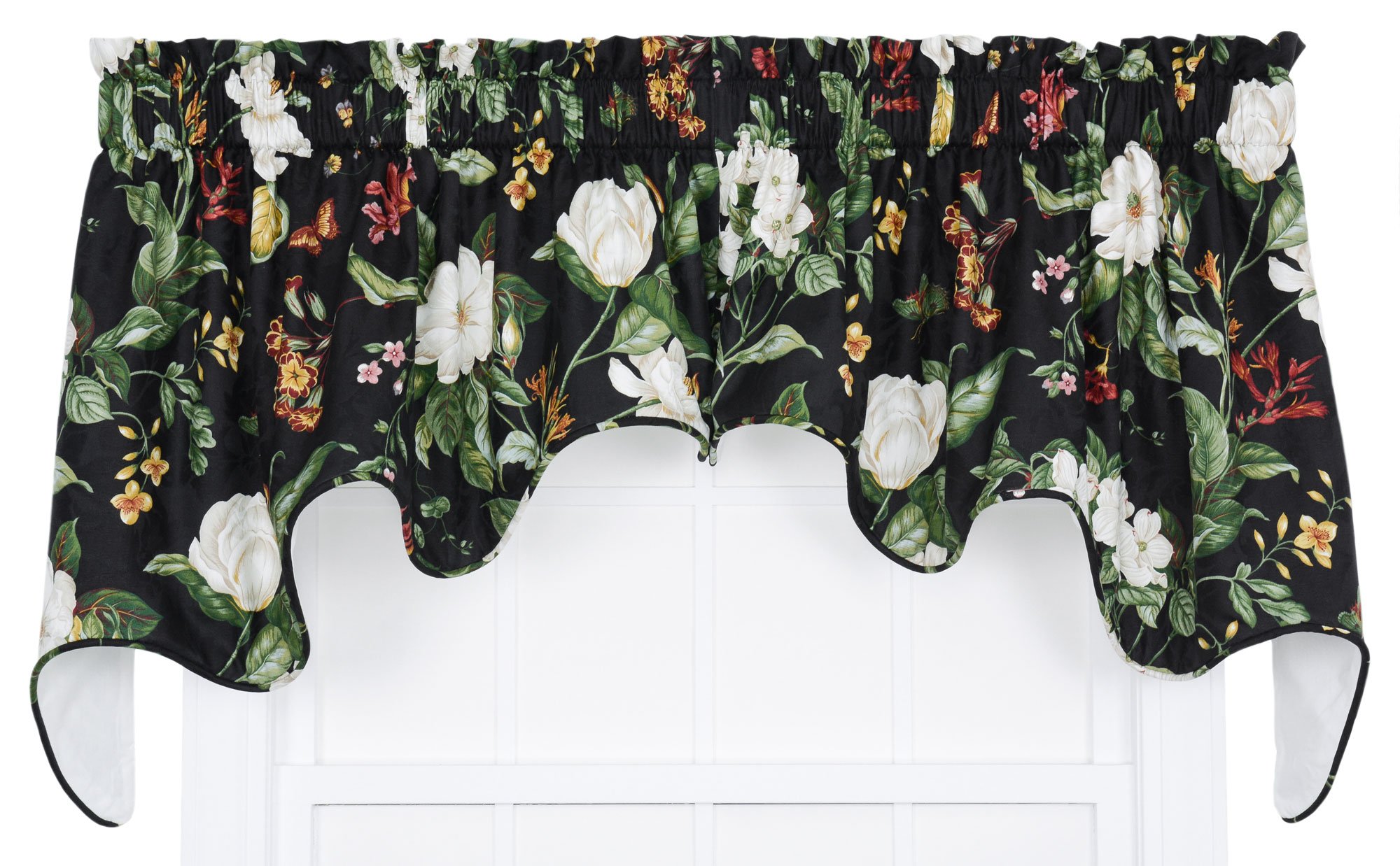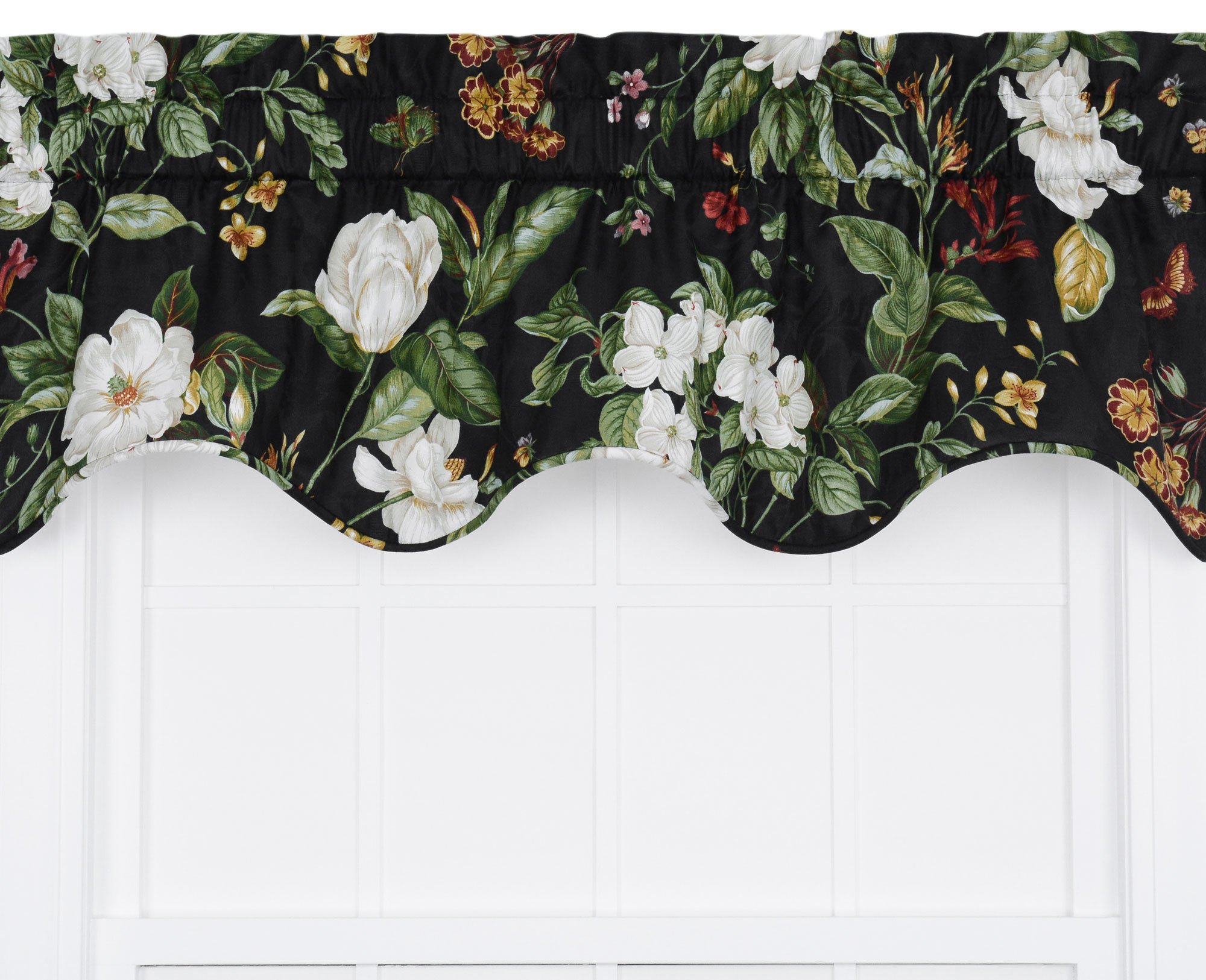 Ellis Curtain Garden Images Large Scale Floral Print Lined Duchess Filler Valance, 50 by 15-Inch, Black
