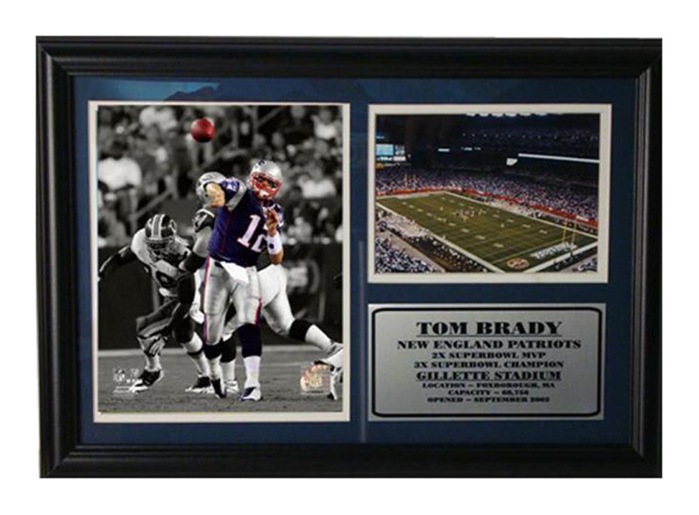 Encore Select 126-33 NFL New England Patriots Framed Tom Brady Photo and Gillette Stadium Print, 12-Inch by 18-Inch