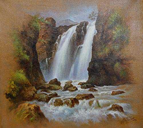 Exotic India The Waterfall - Oil on Canvas - Artist: Shrikant Potdar