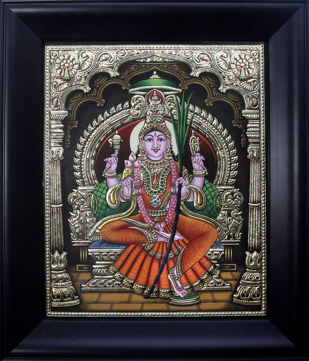 Exotic India Goddess Rajarajeshvari (Framed) - Tanjore Painting on Board