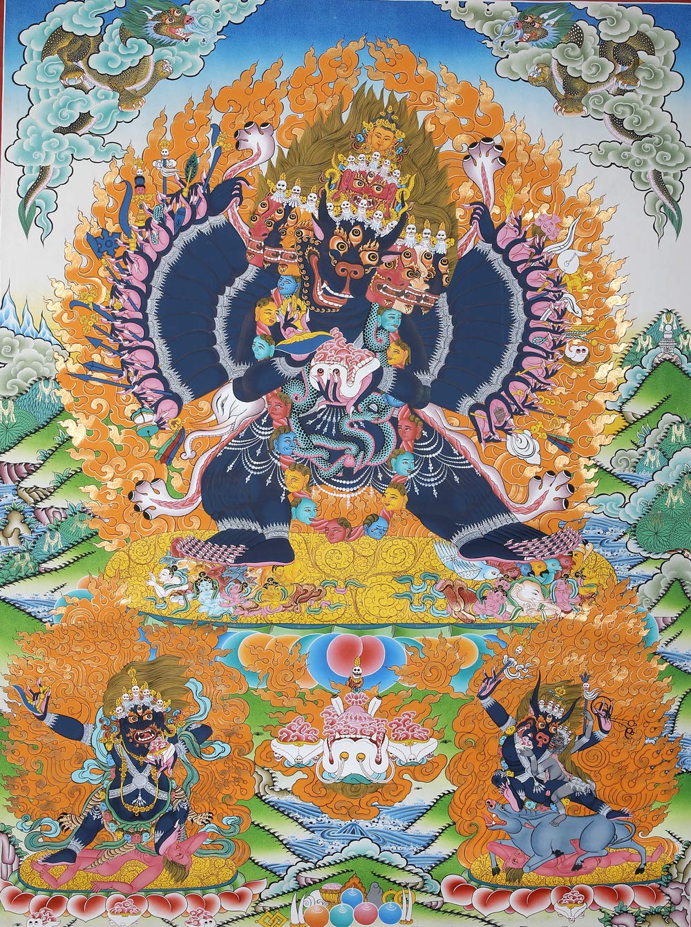 Exotic India Tibetan Buddhist Yamantaka Ekavira (Vajrabhairava) - Large Brocadeless Thangka - Tibetan Thangka Pai