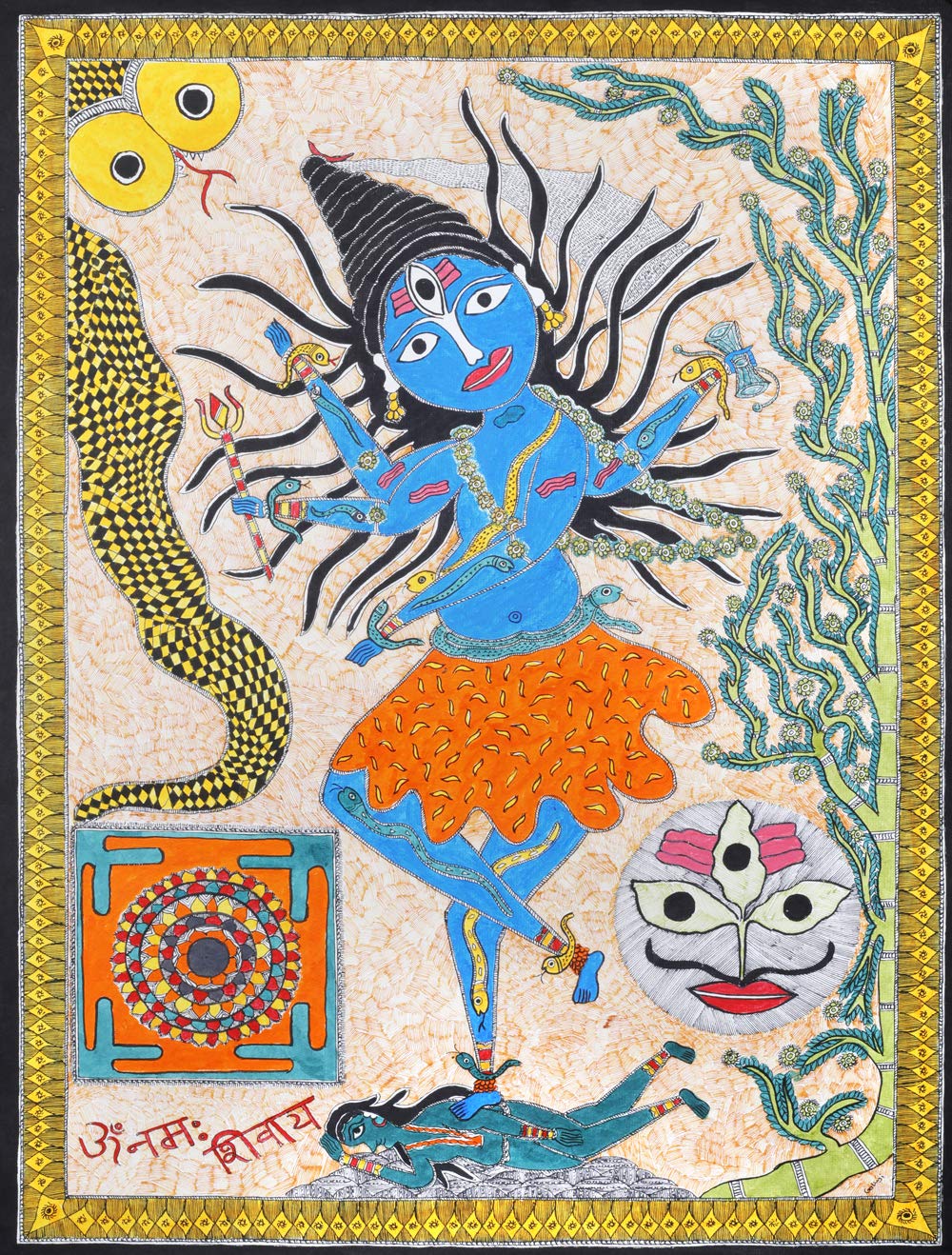 Exotic India Rudra Tandava of Lord Shiva with Rudra Yantra - Madhubani Painting on Hand Made Paper - Folk Paintin