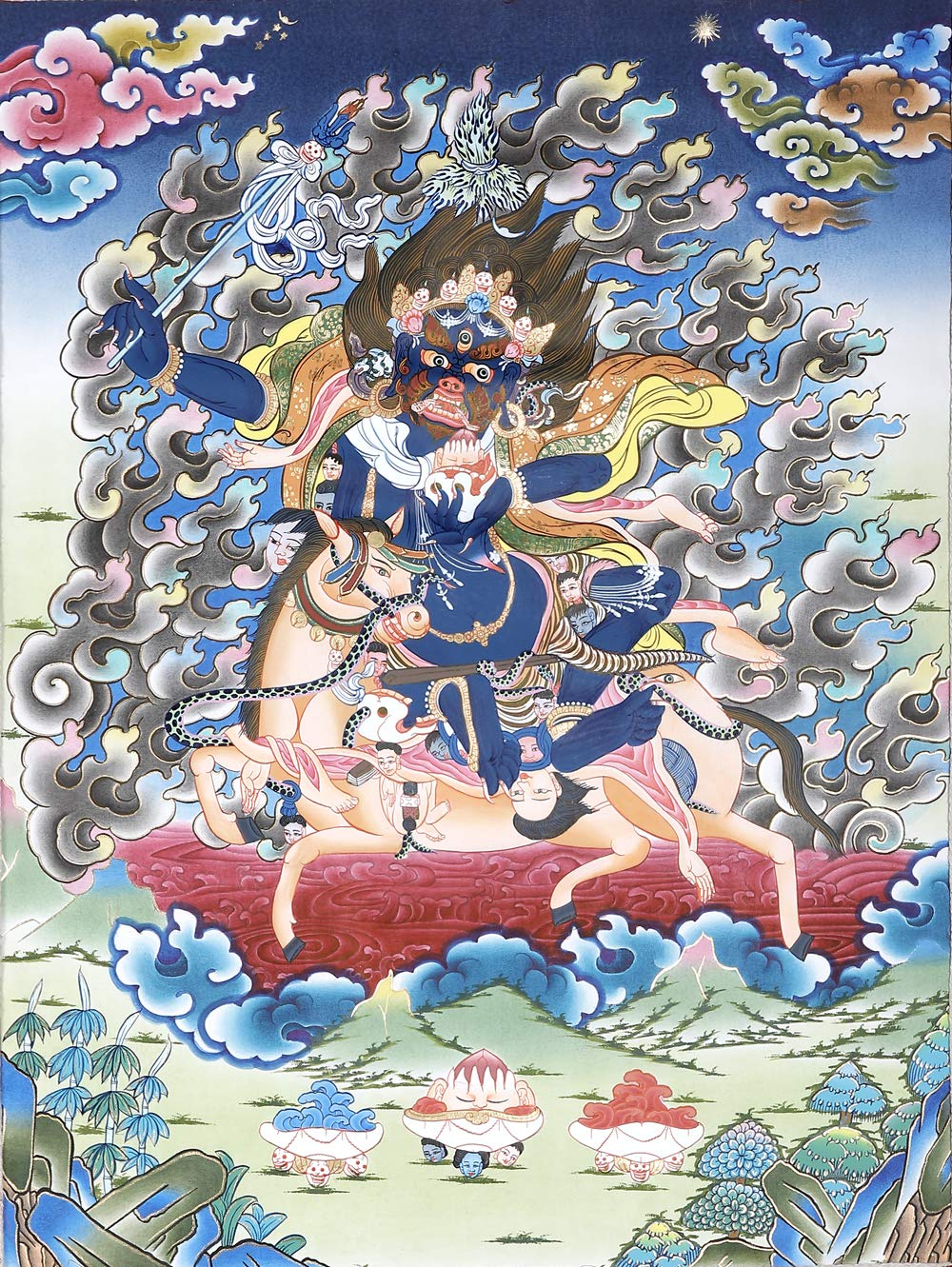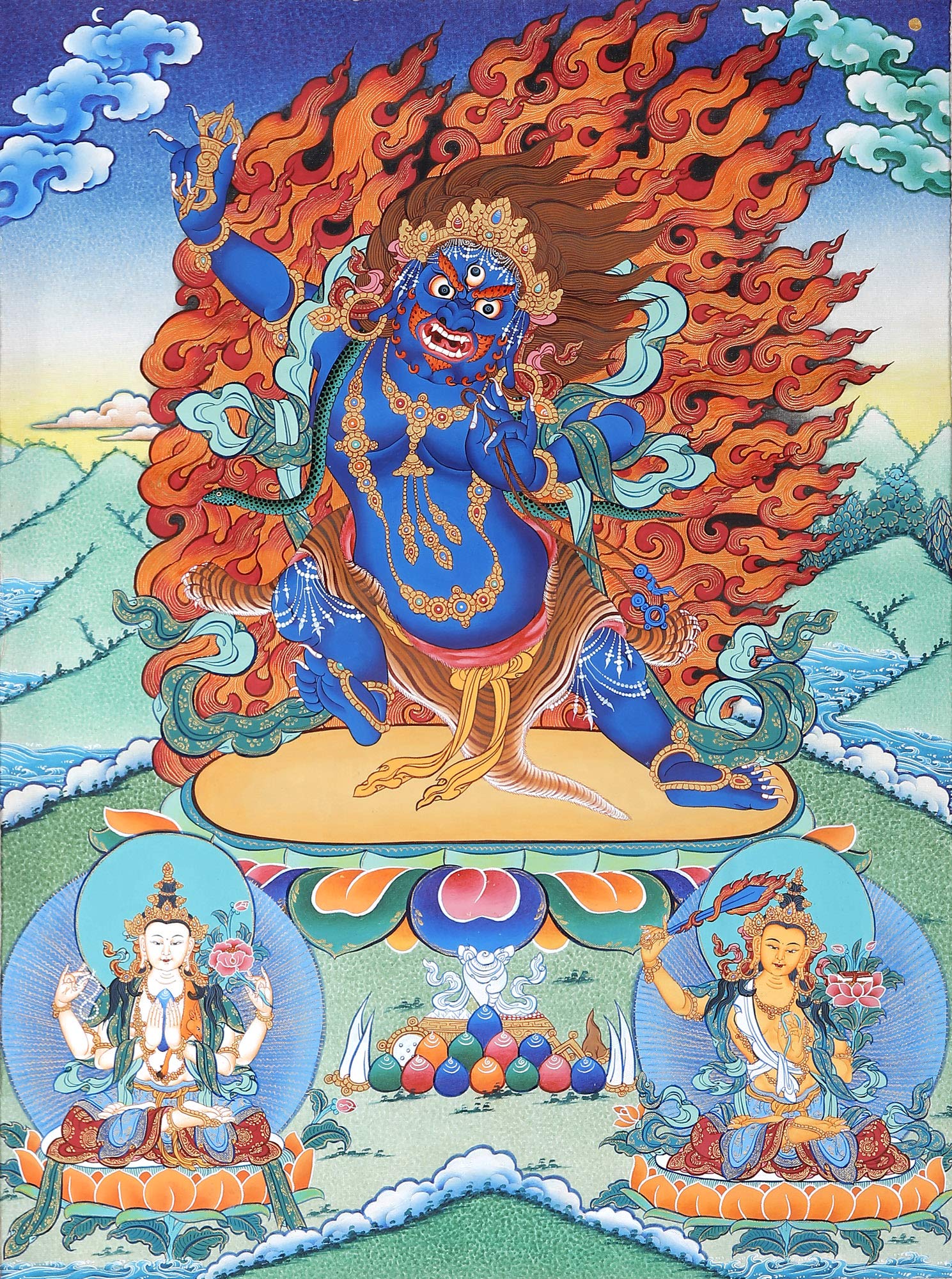 Exotic India Dandapani Two Armed Pangarnatha Mahakala - Tibetan Buddhist - Tibetan Thangka Painting
