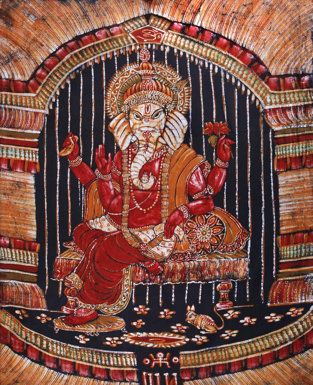 Exotic India Enthroned Ganesha - Batik Painting On Cotton