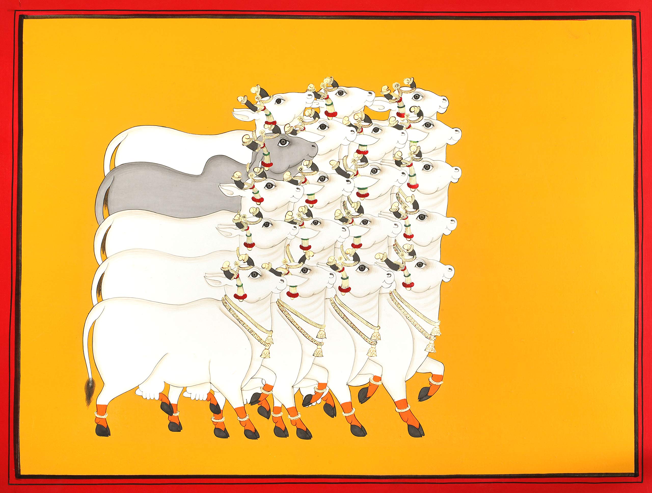 Exotic India Herd of Cows - Water Color Painting on Paper