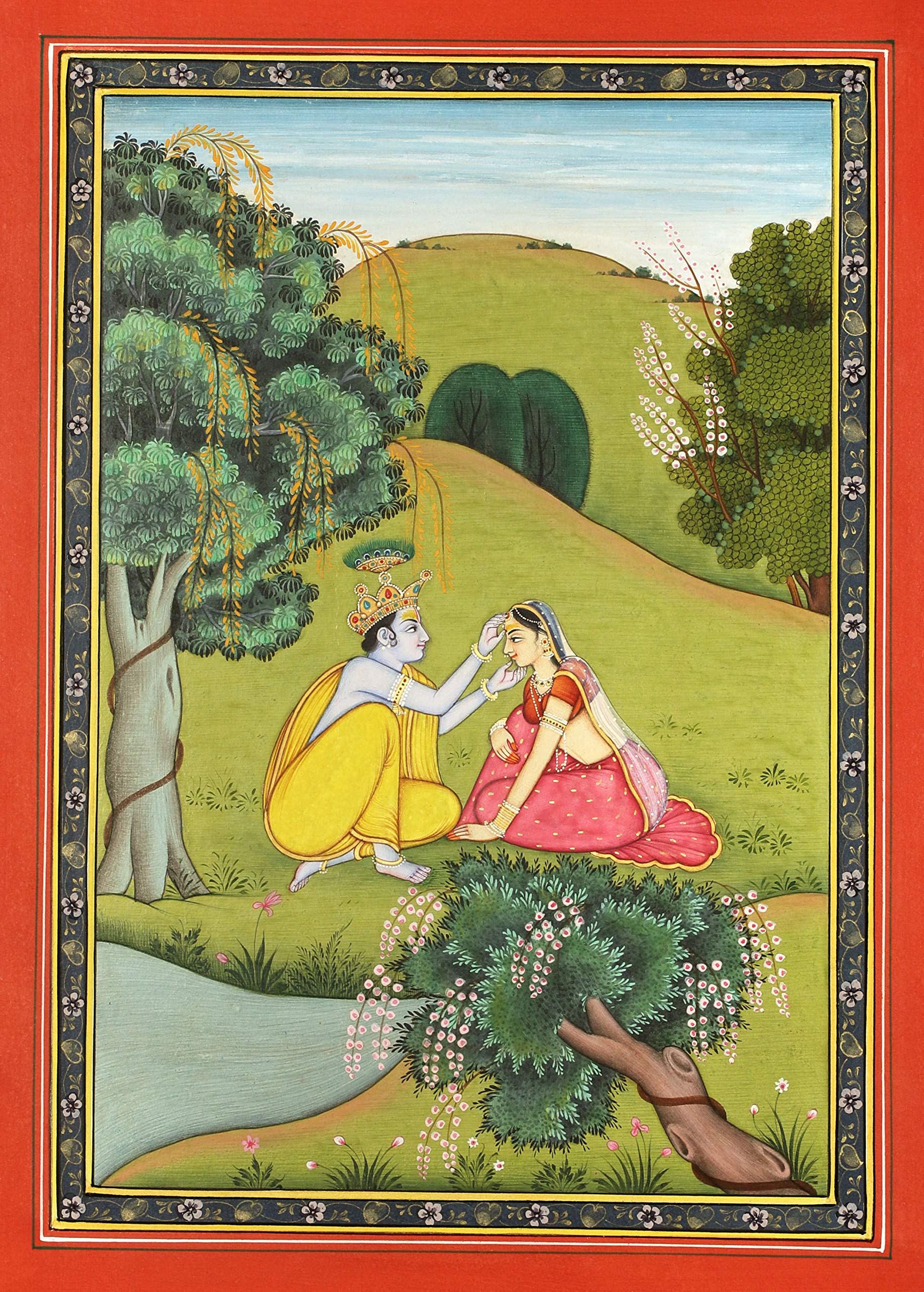 Exotic India Krishna Arranges Radha's Tikka - Water Color Painting on Paper - Artist:Kailash Raj