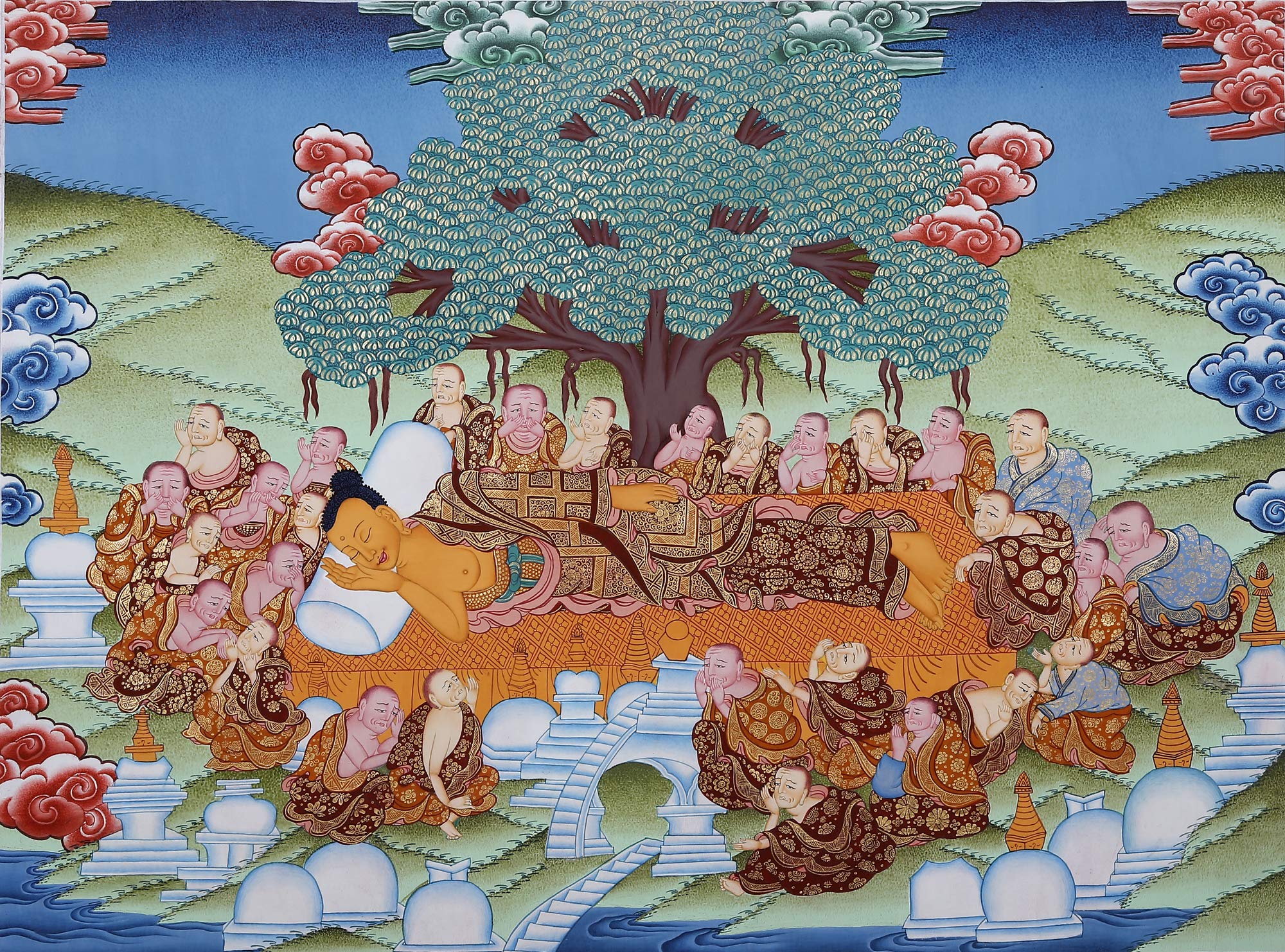 Exotic India Mahaparinirvana Buddha :All Things are by Nature Impermanent.(Brocadeless Thangka) - Tibetan Than