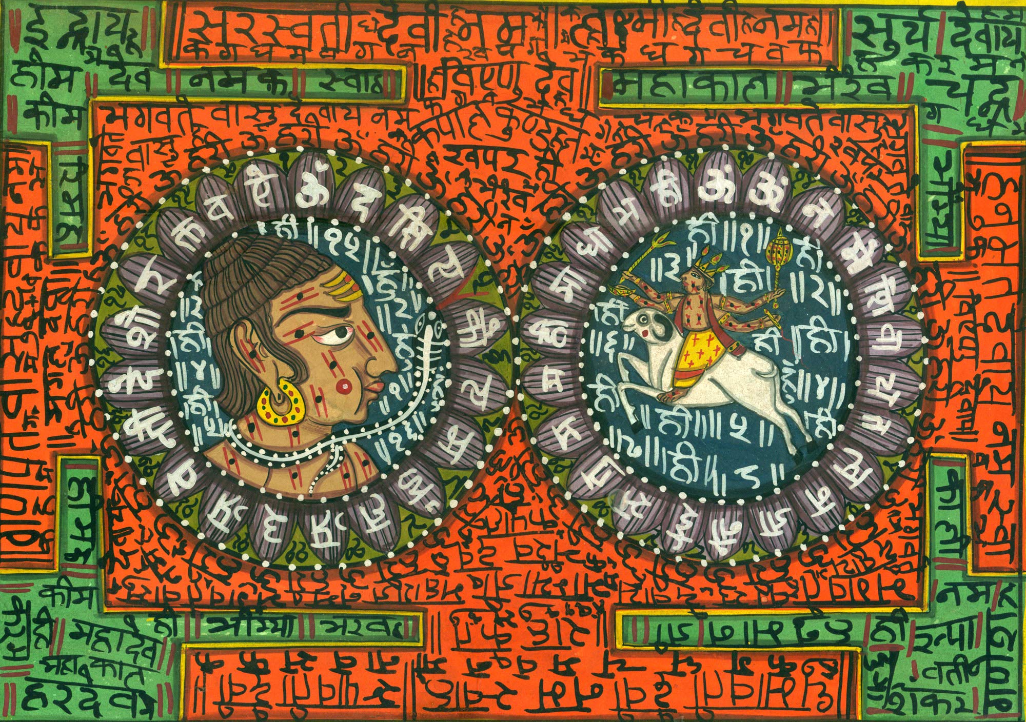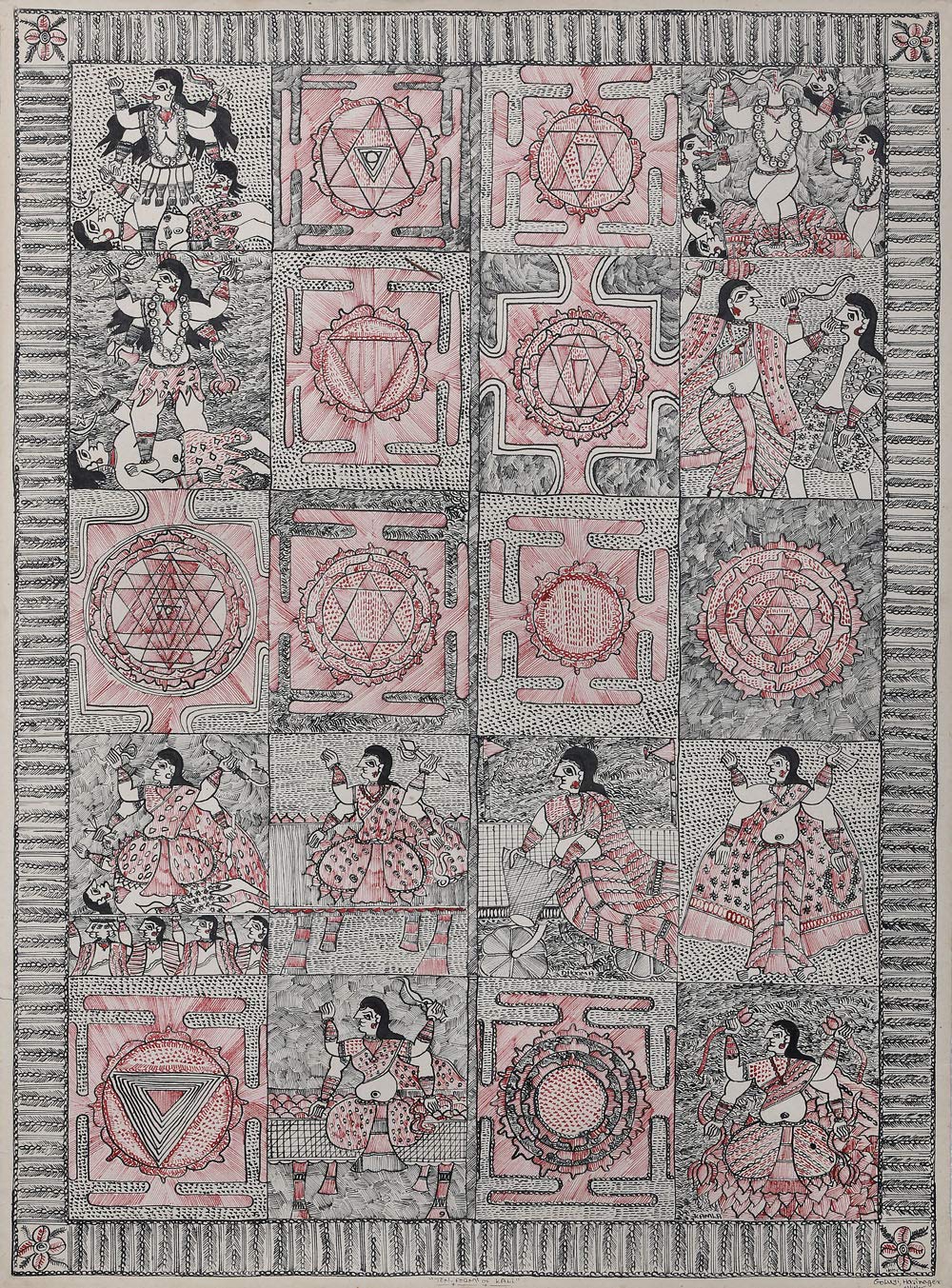 Exotic India The Ten Forms of Goddess Kali with Yantras - Madhubani Painting on Hand Made Paper Treated with Cow