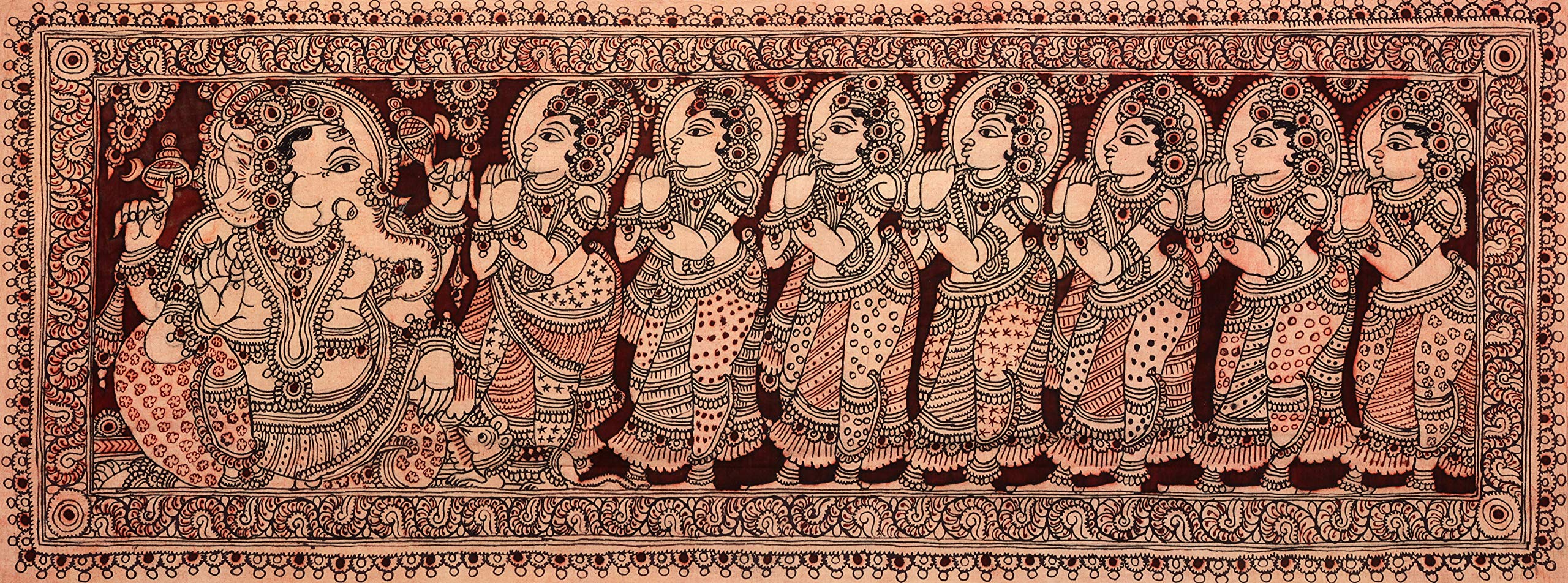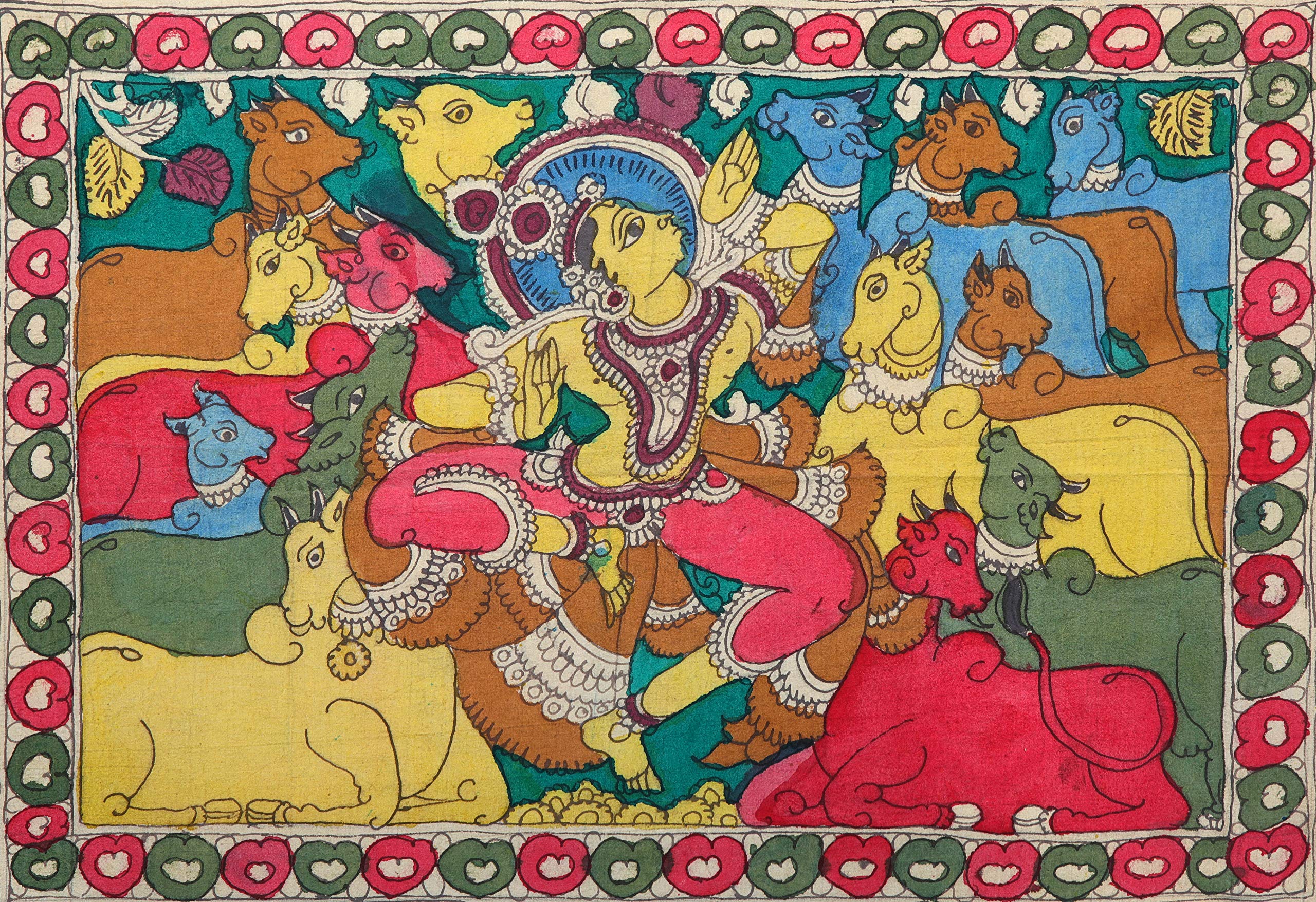 Exotic India The Cowherd of Vrindavan - Kalamkari Painting on Cotton - Artist - D. Lakshmamma (Andhra Pradesh)