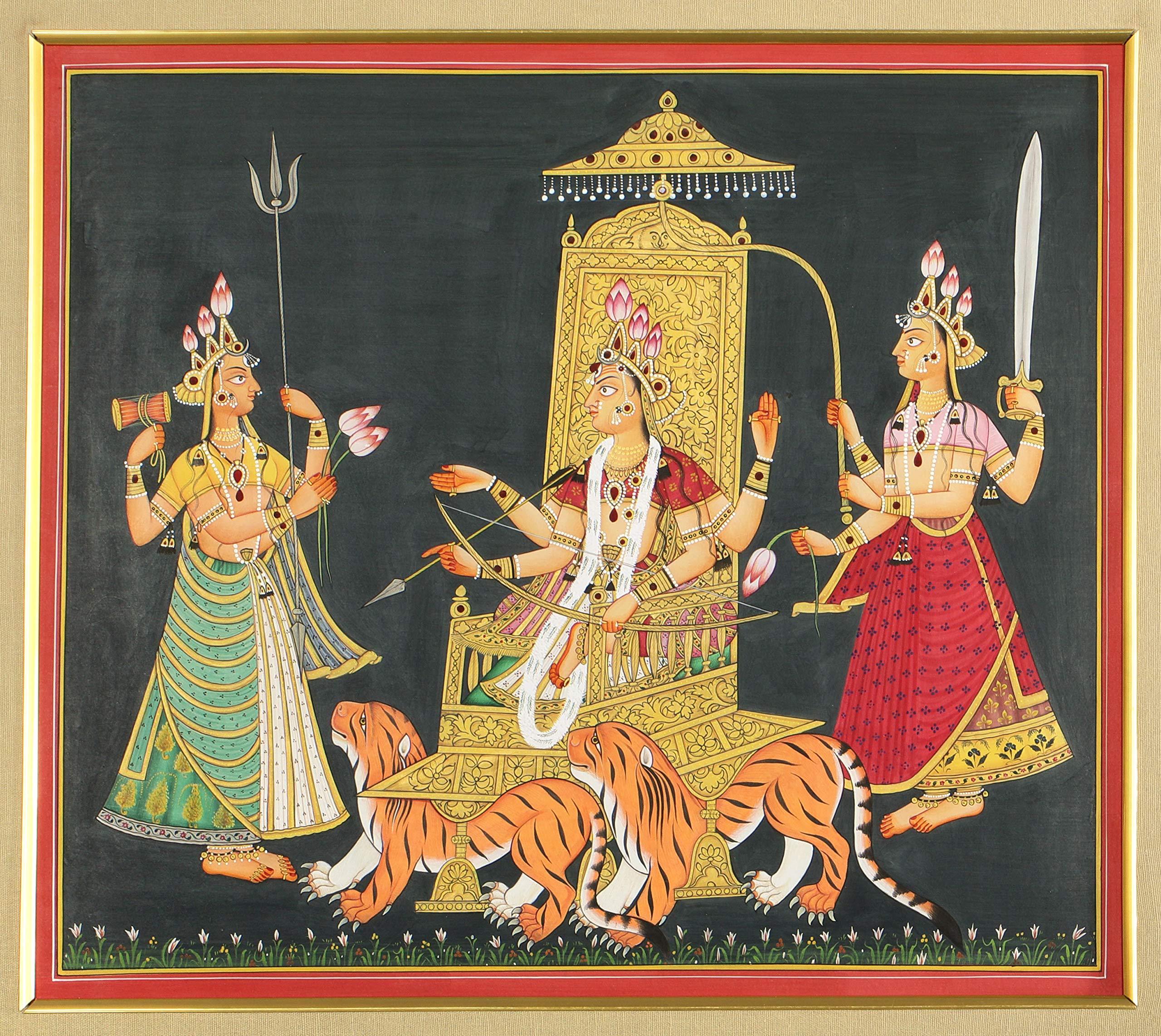 Exotic India Mahishasuramardini Goddess Durga - Madhubani Painting on Hand Made Paper Treated with Cow Dung - FOL